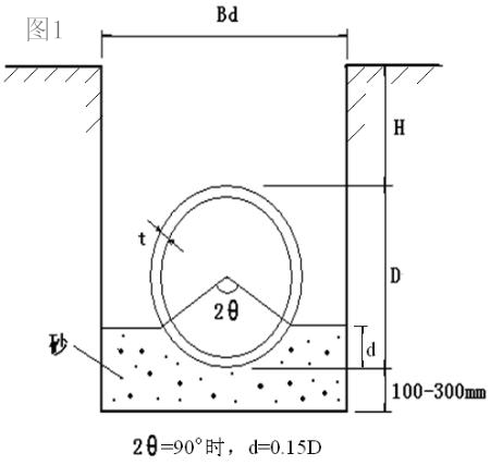 玻璃鋼地埋儲罐就位,應(yīng)注意基礎(chǔ)鑿平,檢驗(yàn)平整度。罐體土弧基礎(chǔ)支撐角不小于90°,罐體土弧基礎(chǔ)支撐范圍內(nèi)罐體腋角部位要采用細(xì)沙或中砂填充密實(shí),與罐壁緊密接觸,不得用土或其他材料填充。地埋儲罐頂部回填沙同基礎(chǔ)做法。(例如100立方:D=3100mm,d=500mm,Bd=5000mm(T型開挖,適當(dāng)放坡,底部寬度不得小于4000mm),H=覆土深度,根據(jù)現(xiàn)場實(shí)際情況。